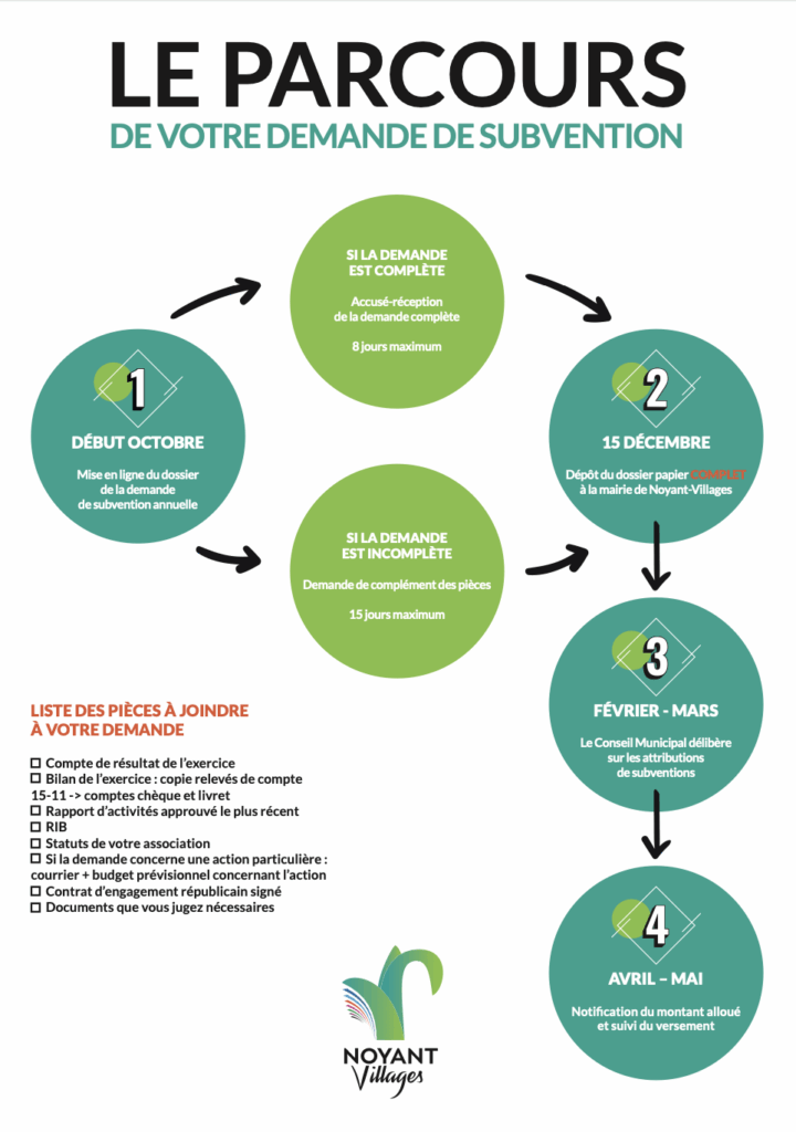 Le dossier de demande de subventions pour l’année 2026 est disponible sur demande à la mairie de Noyant-Villages ou en mairies déléguées.