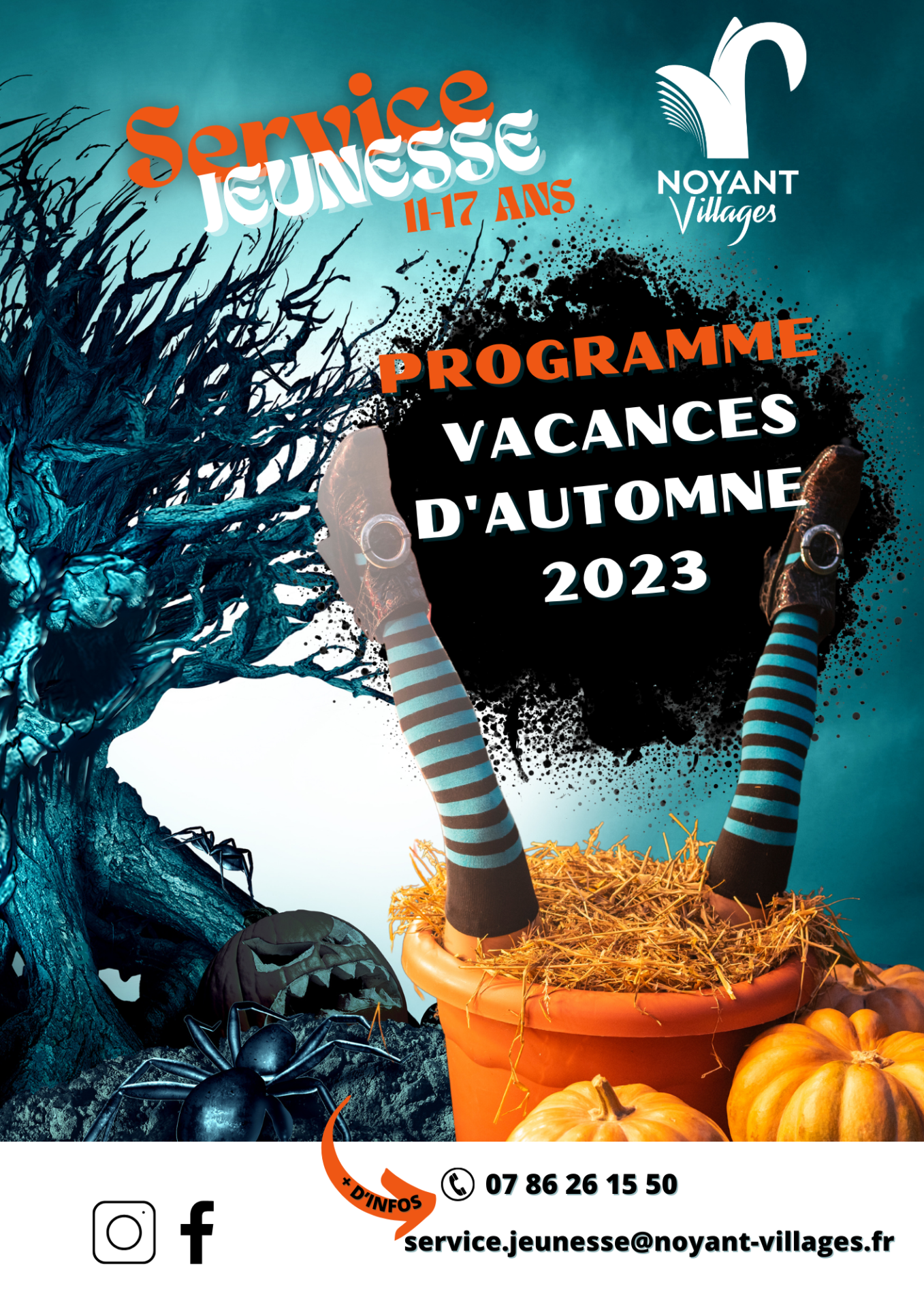 Programme des vacances d'automne 2023 Le Service Jeunesse prépare un programme pour les vacances d'automne 2023. Viens participer aux différentes activités : atelier Ben, sortie cinéma Angers, jeu "action-vérité musicales"…